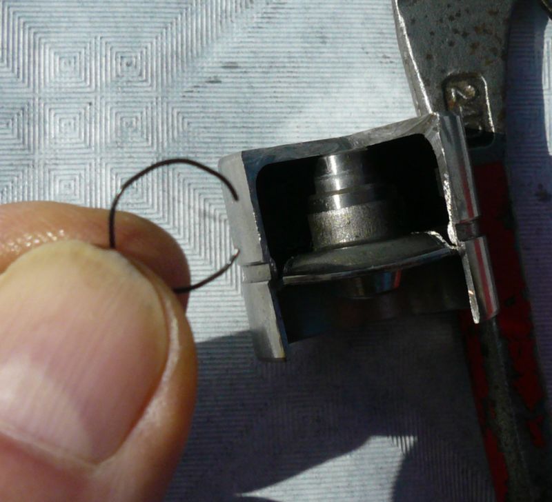 C'est donc par cette cavité que passe l'huile qui va ensuite pénétrer dans le petit vérin via un clapet anti-retour formé d'une bille qui est maintenue en place par un minuscule ressort (que l'on ne voit pas).