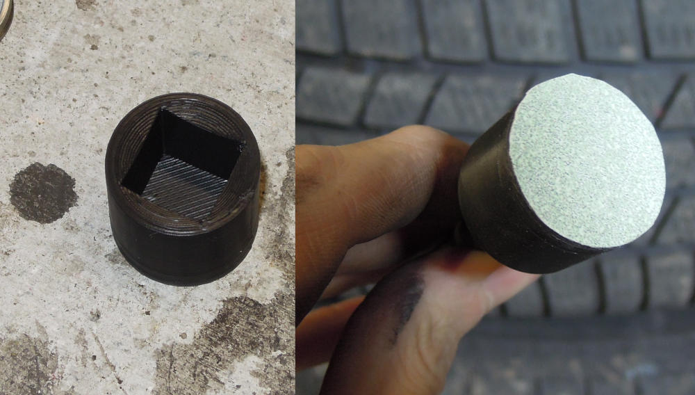 J'ai fais cette pièce avec une imprimante 3D pour pouvoir être monté sur une carré 1/2 pouce, et j'y colle du papier de verre au scotch double face.